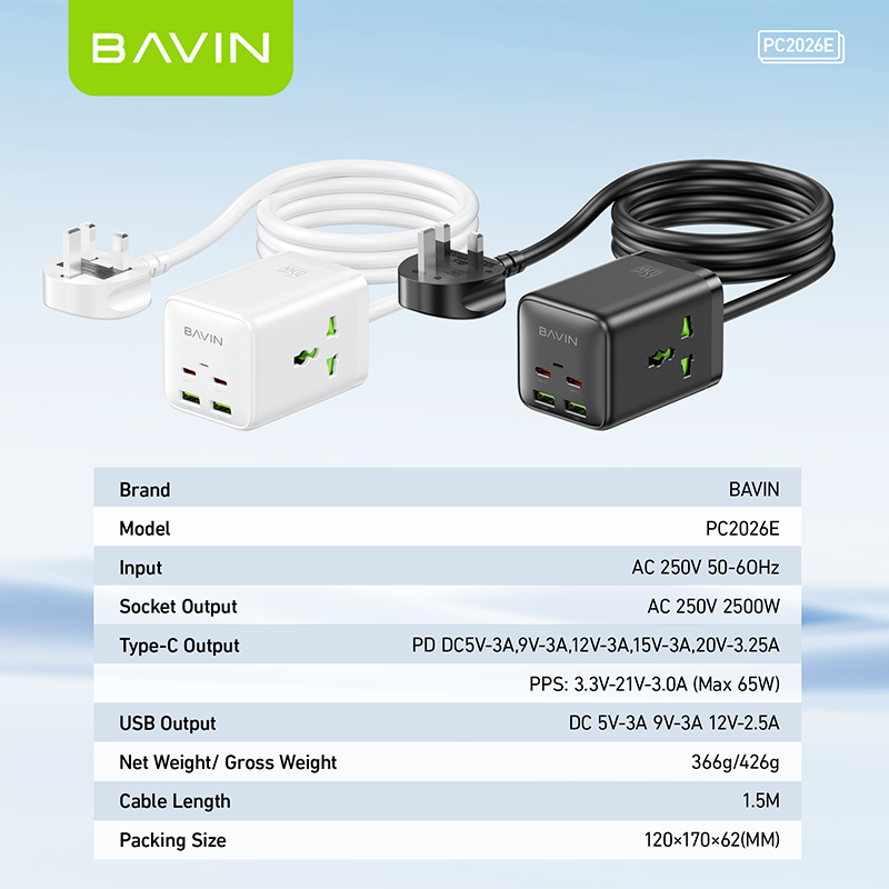 BAVIN PC2026 65W GaN Desktop Power Strip