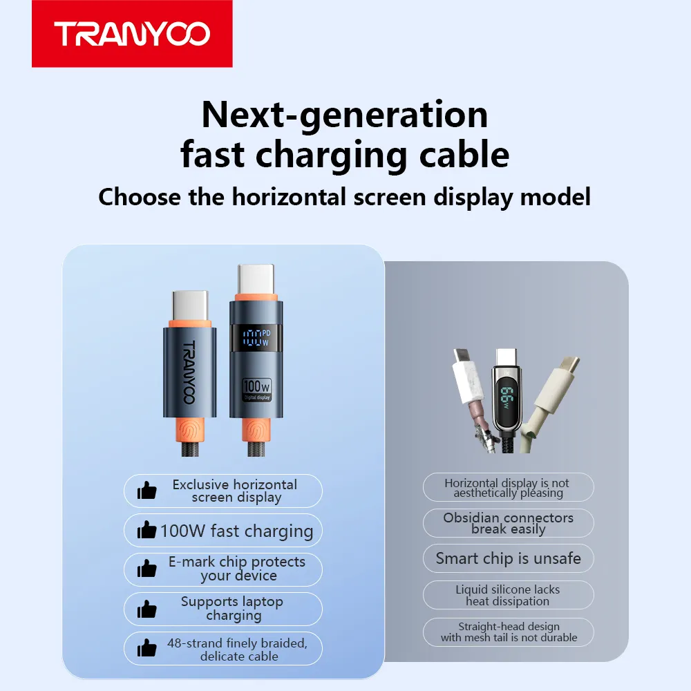 Tranyoo 100W Auto Smart Power Off Cable With Digital Watt Display | C – C