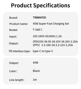 Be the first to review “Tranyoo 45W Charger | Type C-C” Cancel reply